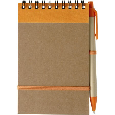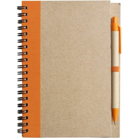 100-seitiges Notizbuch aus Karton, mit farblich abgestimmtem Kugelschreiber aus Recycling Papier mit blauer Mine, A/4.