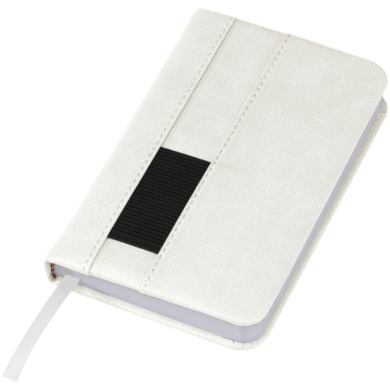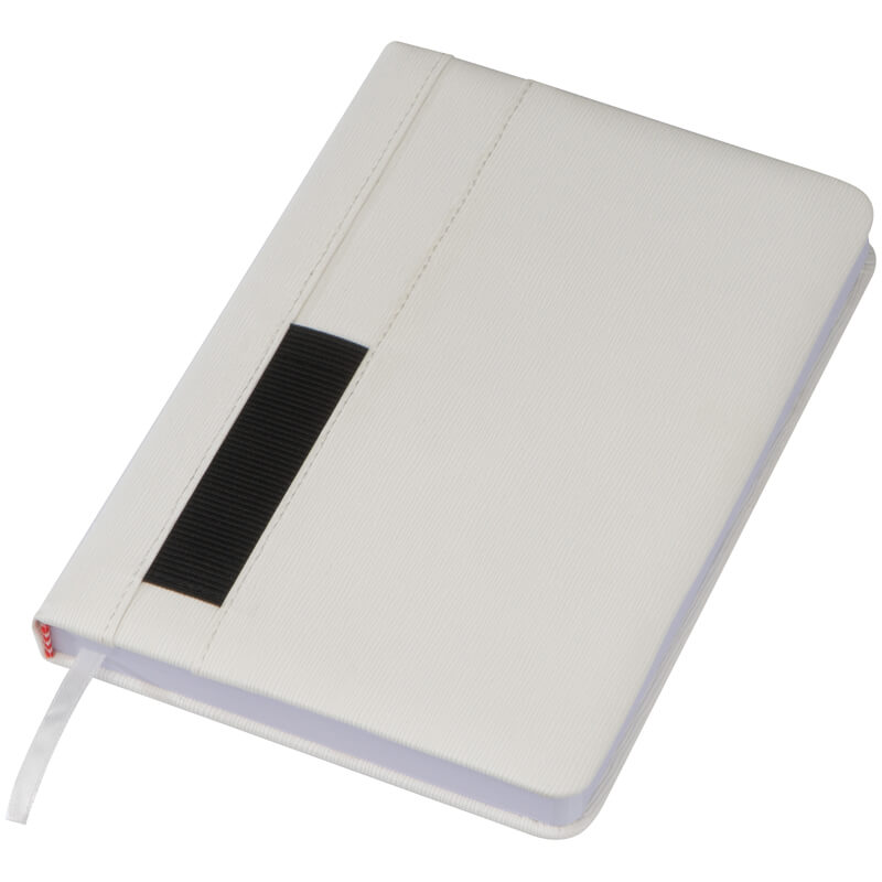 Liniertes Hardcover Notizbuch A5 mit Seitentrenner und elastischem Verschlussband. 160 Seiten, 70g/m² - creme-farbene Seiten PMS color 1: Black PMS color 1: 428 PMS color 1: White PMS color 1: Red 032 PMS color 1: 286 PMS color 1: 282