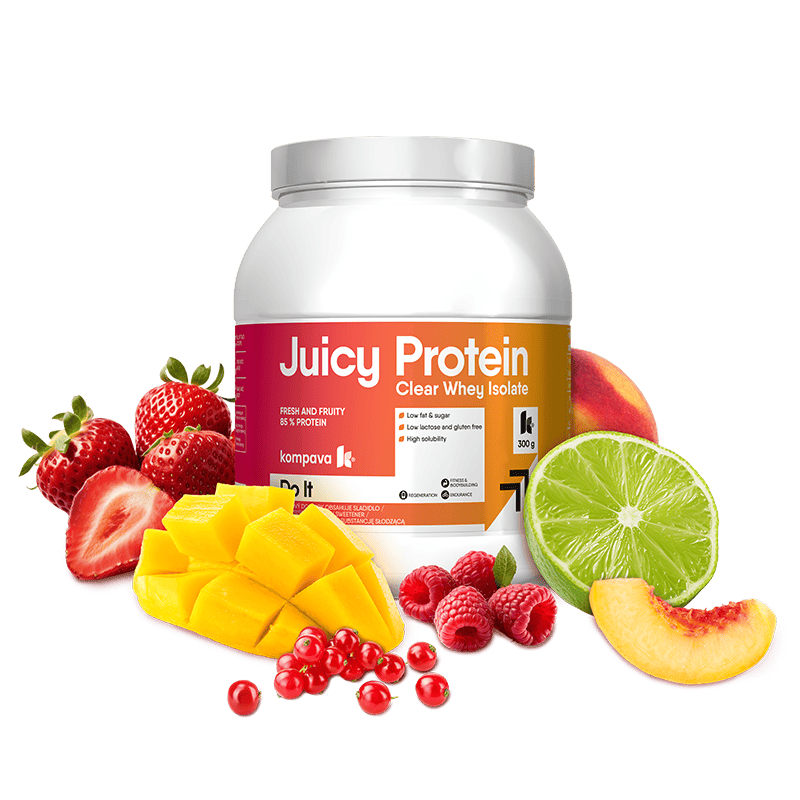 Ein erfrischendes Eiweißgetränk mit 85% Eiweißgehalt in Form einer klaren Limonade. Es enthält keine dichten Milchbestandteile, hat ein Minimum an Zucker, Kohlenhydraten, Fett und Laktose. Ideal für Sportler, Menschen auf Diät und als gesunde Alternative zur Sommerlimonade. Fördert das Muskelwachstum und die Regeneration. Geeignet für Diabetiker, Zöliakie und Kinder ab 8 Jahren. 300 g Geschmacksrichtungen:  Redberries-Lime, Mango-Peach