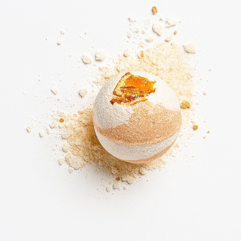Sprudelnde Badekugel mit ätherischen Zitrusölen und getrockneter Orange – ein erfrischendes Erlebnis für Körper und Geist. Erleben Sie ein Bad voller Sprudel, Schaum und frischem Zitrusduft. Die handgeformte Sprudelkugel enthält ätherische Pflanzenöle, getrocknete Orangen und ätherische Öle, die das Badezimmer und die ganze Wohnung parfümieren. Traubenöl spendet Feuchtigkeit und pflegt die Haut, Zitronensäure strafft sie und enthärtetes Wasser macht jedes Bad angenehmer. Gönnen Sie sich belebende Entspannung mit einem Hauch von Zitrus.