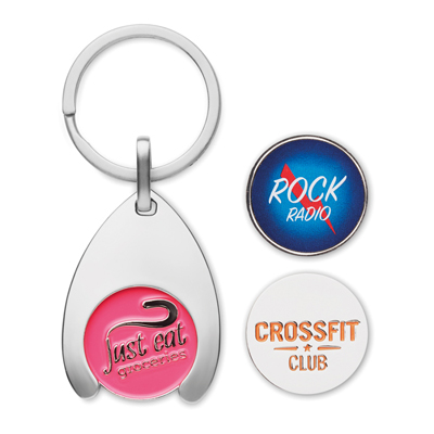 Kovový prívesok na kľúče so žetónom s plnofarebnou potlačou (tvrdá glazúra) - Reklamnepredmety