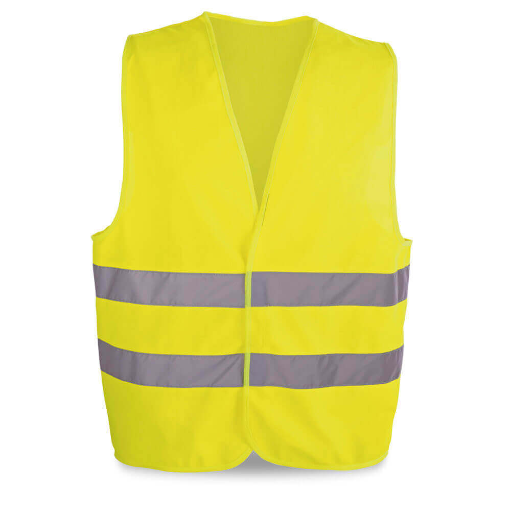 Reflektorweste aus 100% Polyester. Zertifiziert mit EN ISO 20471 Klasse 2. Mit 2 horizontalen Reflektorstreifen und einem frontalen Klettverschluss.