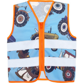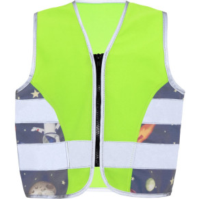 Vielfältige Motive, Reißverschluss Ton-in-Ton, neon green/ufo, hi vis yellow/t-rex, neon pink/unicorn zertifiziert nach EN 17353 Type AB3, blue/tractor zertifiziert nach EN 17353 Type B3, gemusterter Stoff mit reflektierender Beschichtung, XXS 3-4 Jahre, XS 5-7 Jahre, S 8-10 Jahre.