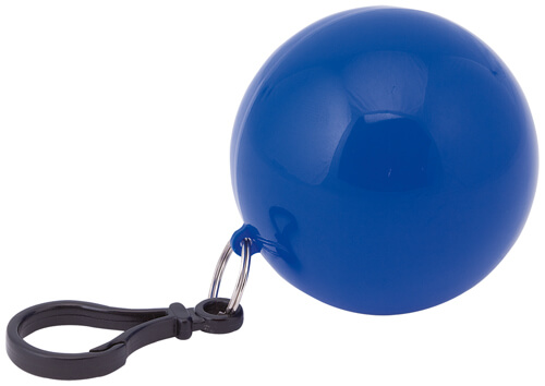 PVC Poncho in an ABS plastic ball with a snap hook attachment.