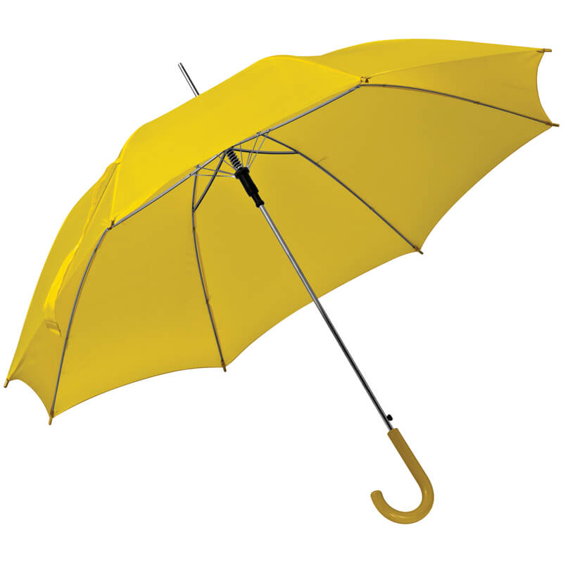 Automatic polyester (190T) umbrella with eight panels and metal shaft and a Velcro closing.