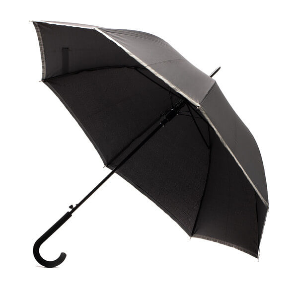 Automatic umbrella with a soft-touch handle. Metal frame, ribs and shaft. The edge of the umbrella is trimmed with reflective tape. Diameter 1020 mm.