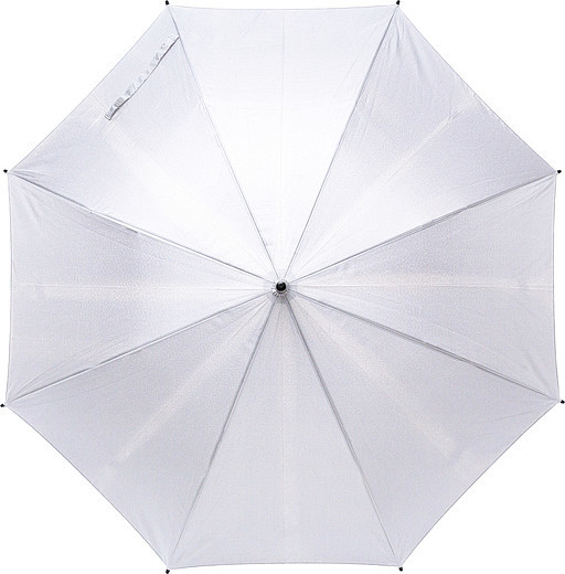 Automatic polyester (170T) umbrella with eight panels and a plastic coloured handle with a Velcro closing.