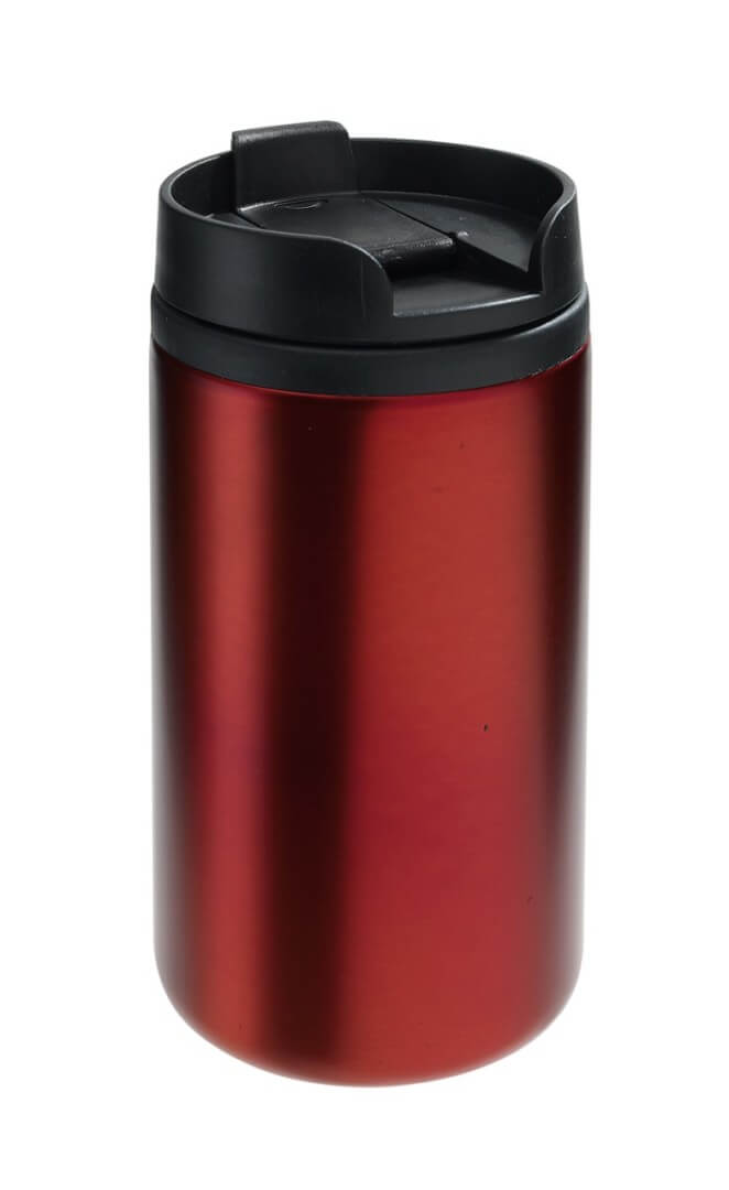 "Take Fast", doppelwandig: äußeres Edelstahlteil, Kunststoff-Innenteil, Kunststoffkappe mit sicherer Schrubbkappe und integrierter Trinköffnung, gummierter Boden für guten Grip, Fassungsvermögen ca. 290 ml, in Geschenkbox