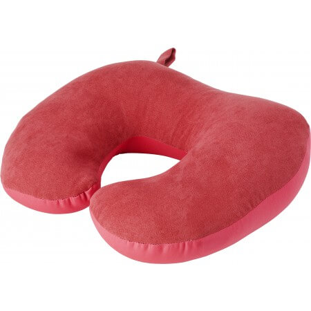 2-in-1 travel pillow with polyfoam beads. The pillow can be transformed from a round neck pillow in to a rectangular pillow by using the zipper. With super soft suede fabric matching loop.