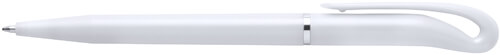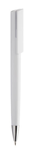Kugelschreiber aus Kunststoff mit silbernem Clip und Chrome-Spitze. Mit blau schreibender Mine.