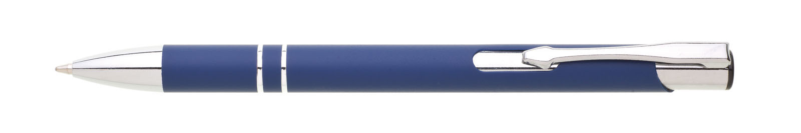 Aluminium-Kugelschreiber mit satinierter gummierter Oberfläche und blauer Mine.