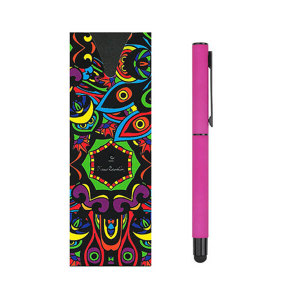 Luxusní kuličkové pero Pierre Cardin v módních barvách s hliníkovým tělem a gumovou povrchovou úpravou, která je velmi příjemná na dotek. Pero má černé detaily, stylus a obsahuje kvalitní modrou náplň s hrotem 0,7 mm. Baleno v luxusní kapse Pierre Cardin, dodáváno s certifikátem pravosti. Doporučená technologie tisku: laser L1, UV tisk. Maximální velikost tisku: 40 × 6 mm. Rozměry: kuličkové pero 1 × 14 cm, balení 5,5 × 15,5 cm. Kartonové množství v ks: 60.