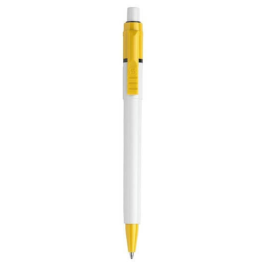 Stilolinea plastic ballpen Baron, with a white barrel, coloured clip, and jumbo refill. Blue ink.