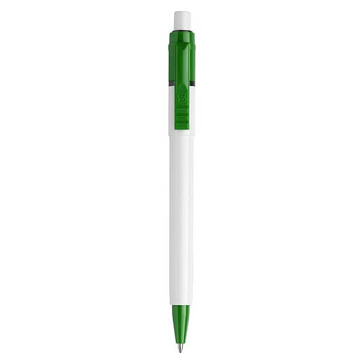 Stilolinea plastic ballpen Baron, with a white barrel, coloured clip, and jumbo refill. Blue ink.