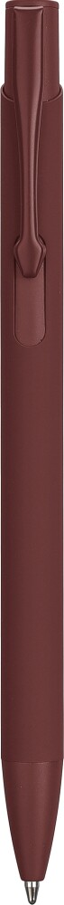 Recycled aluminum ballpoint pen with a rubberized coating on the body. The clip, tip, and pusher are in matching color. The clip is made from metal and the tip from plastic. Approx. 800 meters of writing length. Includes engraved recycled aluminum logo. Blue ink. Dimensions: 1 x 13,6 x 1,2 cm