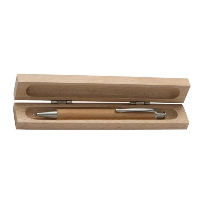 ECO-Kugelschreiber aus Holz mit blauer Mine, im Holzetui. Bitte beachten Sie, dass bei der Gravur von Naturmaterialien die Gravurfarbe einzelner Stücke abweichen kann.