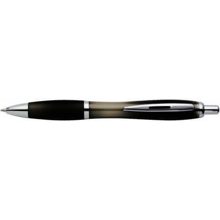 Plastic ballpen with a coloured rubber grip. Blue ink.