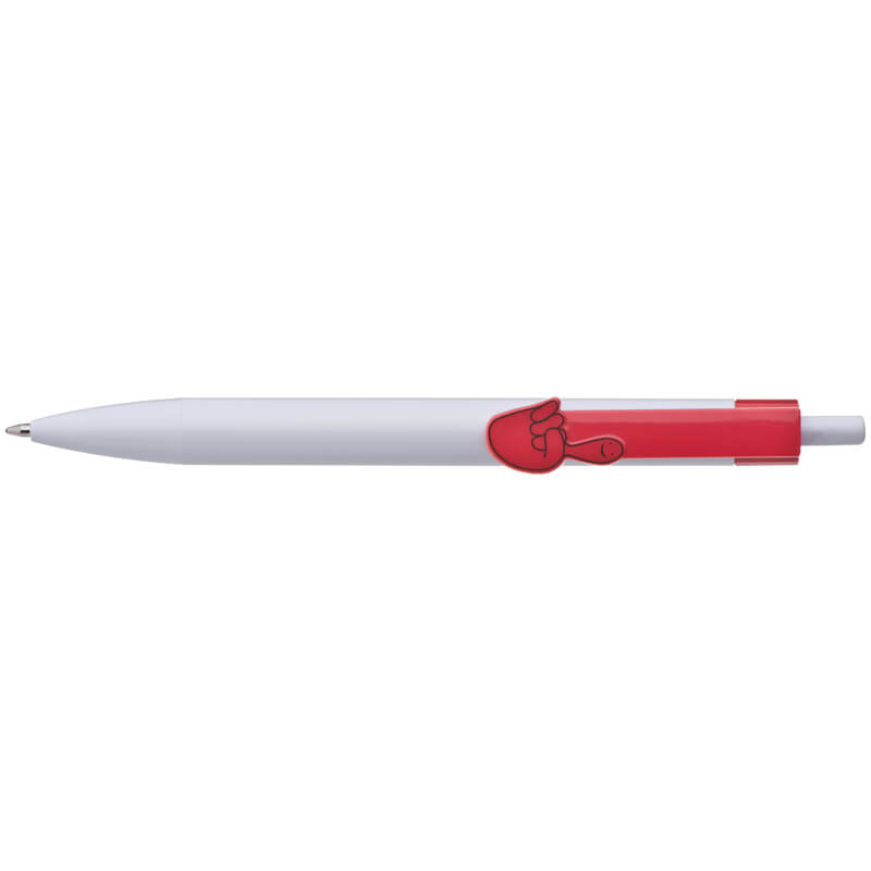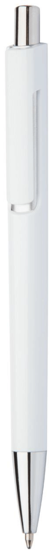 Weißer Kunststoffkugelschreiber mit farbigem Clip und blauer Schreibmine. Ihr Logo wird rechts vom Clip, auf dem Schaft oder dem Clip gedruckt.
