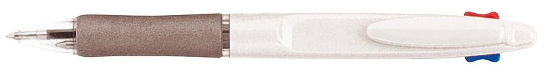 Kugelschreiber aus Kunststoff mit farbiger Gummi-Griffmanschette. Mit blau schreibender Mine.