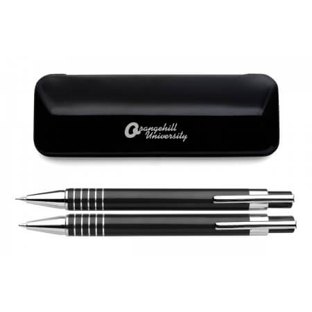Pen set consisting of a lacquered ballpen and pencil in a matching colour metal presentation box. Black ink.