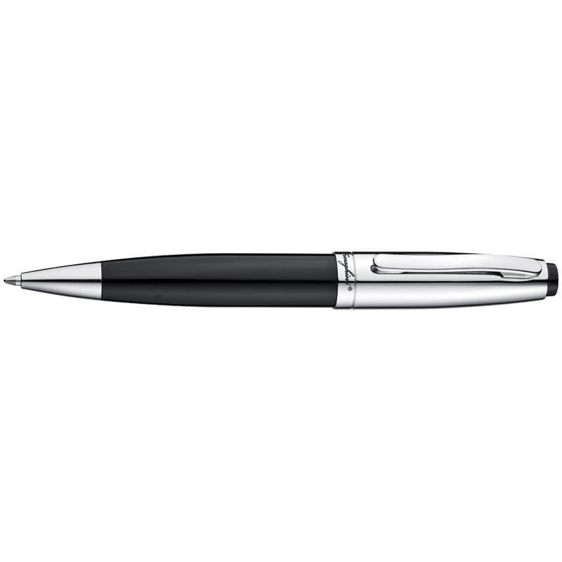 Das klassisch elegante Ferraghini-Schreibset besteht aus einem Kugelschreiber mit Drehmechanismus und einem Tintenroller (beide blau) in einer wunderschönen schwarzen Faltschachtel.