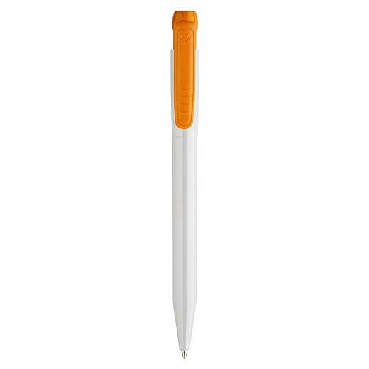Stilolinea plastic ballpen Baron, with a white barrel, coloured clip, and jumbo refill. Blue ink.