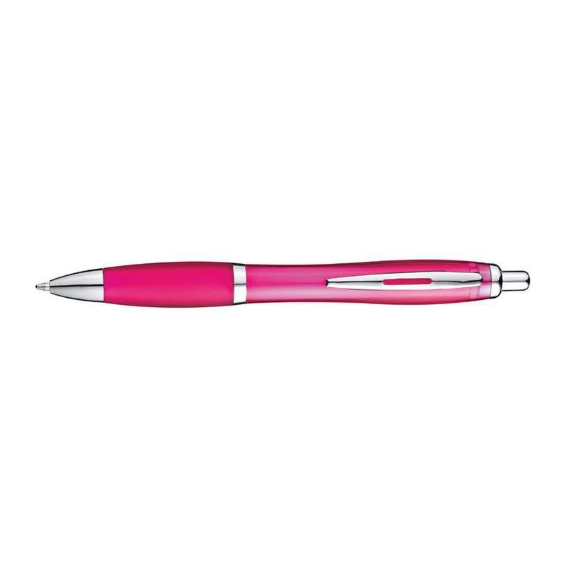 Plastové kuličkové pero značky Stilolinea. Pero má bílé tělo a široký barevný klip, disponuje dlouho píšící náplní modré barvy. Rozměry: O 1.4 cm Kartonové množství v ks: 1000