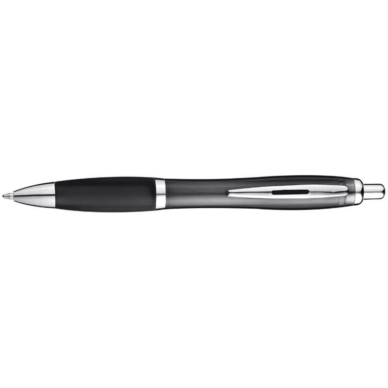 Plne lakované kovové guľôčkové pero s 3 ozdobnými prúžkami. Pero má veľkú modrú náplň.