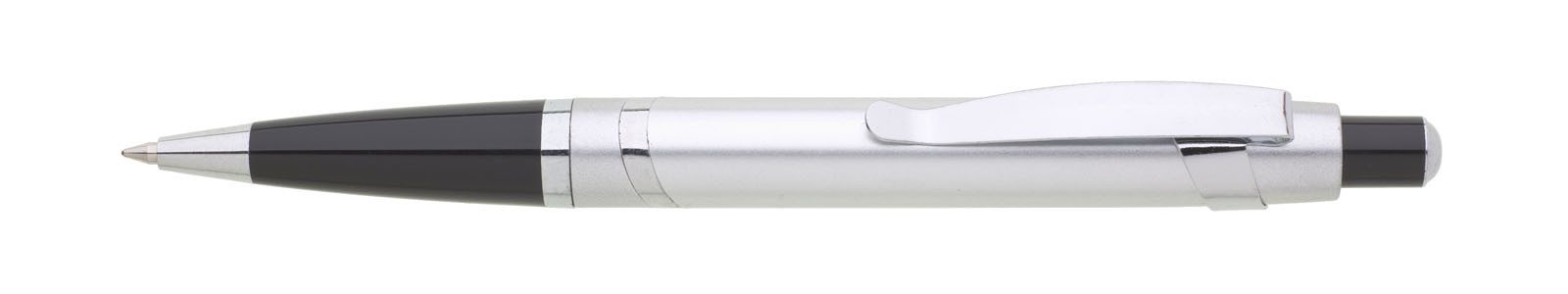 Dünner klassischer Druckkugelschreiber PIAZA CLICK. Material Edelstahl. Blaue Mine mit großem Volumen. Groß angelegt