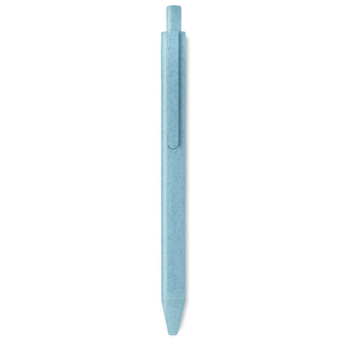 Umweltfreundlicher Kunststoffkugelschreiber aus Weizenstroh mit farblich passender Kappe und blauer Mine.