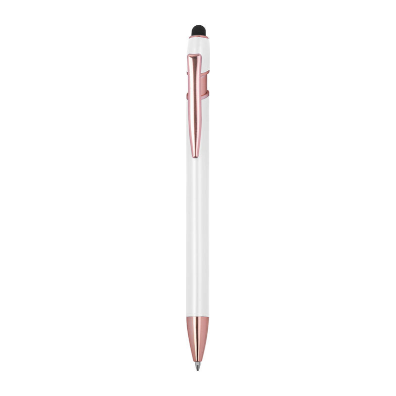 Der dünne Metallkugelschreiber SOTTI TOUCH mit einer Spitze zur Touchscreen-Steuerung hat ein farbiges Gehäuse und Chromzubehör. Blaue Mine X20. X-20 (95 mm)