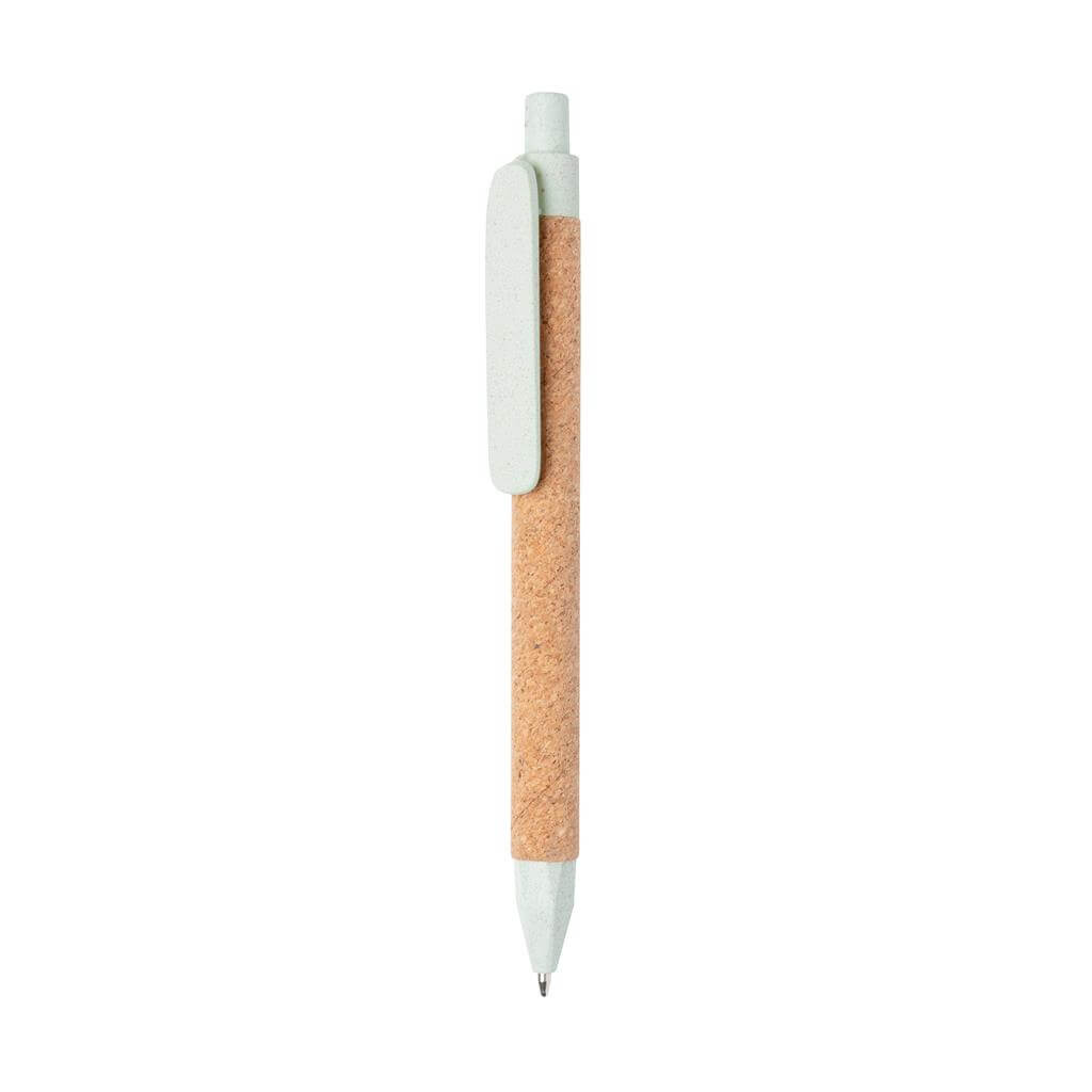 Kugelschreiber aus Weizenstrohfaser und ABS, mit schwarzschreibender Tinte und einem Metallclip.