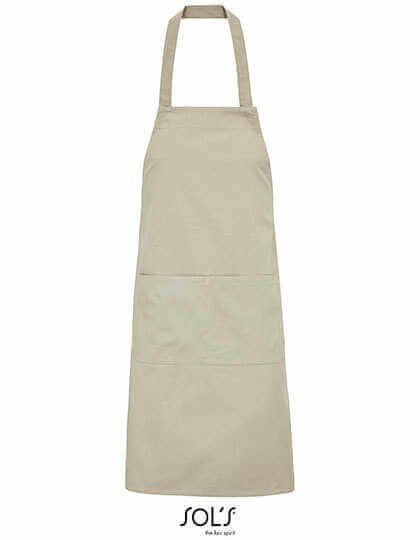 Schürze aus 100% Bauwolle mit einer Vordertasche.