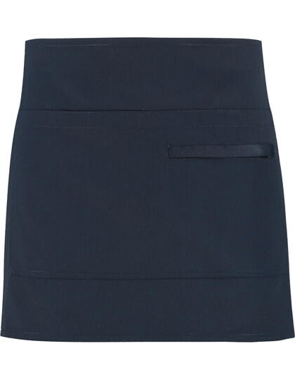 Kurze Unisex-Barschürze | Klassischer Schnitt | Taillenband aus demselben Stoff | Eine offene Tasche und eine Reißverschlusstasche | Gewebtes BarGear®-Etikett | Länge (ohne Träger): 38 cm, Breite: 69 cm, Kordellänge (auf jeder Seite): 88 cm