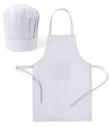 Non-woven (80 gr/m?) apron which can be coloured in, supplied with four felt tip pens.