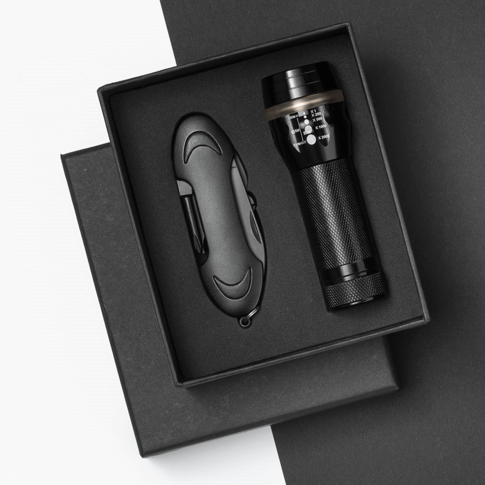 Praktická súprava Colorado I obsahujúca svietidlo a nožík. Svietidlo napájané LED diódou. Vyrobená z hliníka. Vytvára lúč svetla. Nožík so sklopnou rukoväťou. Obsahuje vývrtku, otvárač na fľaše, hviezdicový skrutkovač , pilníček a nožničky. Súprava je zabalená do elegantnej škatuľky.