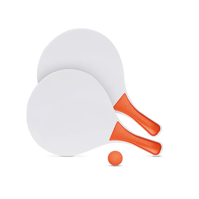 Beachball-Spiel. Bestehend aus zwei Schlägern aus MDF und einem Softball.