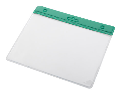 Lanyard aus Polyester mit Kunststoff-Karabiner und PVC Hülle.