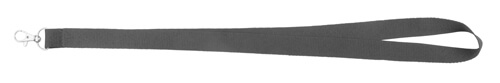 Schlüsselband aus Polyester mit Karabinerhaken aus Metall.