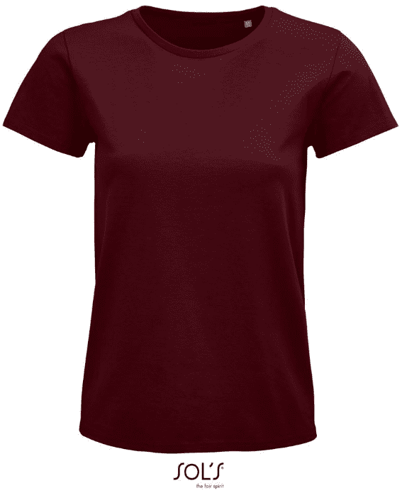Tailliertes Damen-T-Shirt aus Bio-Baumwolle mit OCS-Zertifikat. Gerippter Ausschnitt. Verstärkte, versteckte Nähte am Kragen. Abnehmbares Etikett. OCS Bio-Stoff.