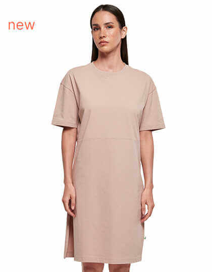 Dieses lässige Basic ist die perfekte Kombination aus T-Shirt und Kleid – aus Baumwollstoff gefertigt und mit ausgeschnittenen Schultern hat es eine schöne weiche Form. Ein Mini-Stehkragen und hochgekrempelte Ärmel runden den stilvollen Look ab. Ideal für Siebdruck und Flexdruck.