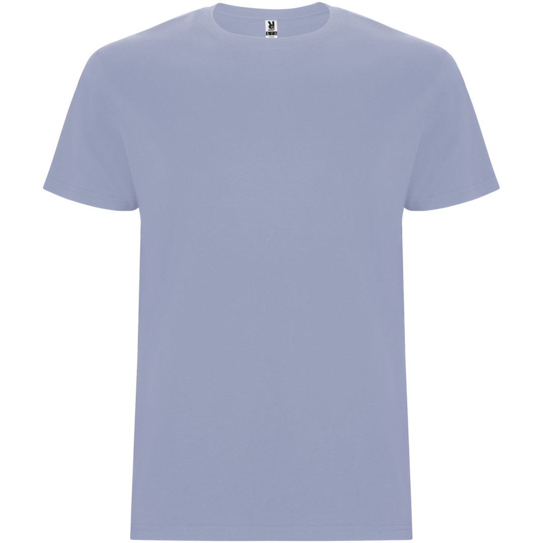 T-Shirt mit 4-lagigem Rundhalsausschnitt und verstärkten, verdeckten Nähten an Kragen und Schultern. Seitennähte. Die Größen 4XL und 5XL sind nur in bestimmten Farben erhältlich. Abnehmbares Etikett. Single jersey Strick 100% Baumwolle, 165 g/m2.