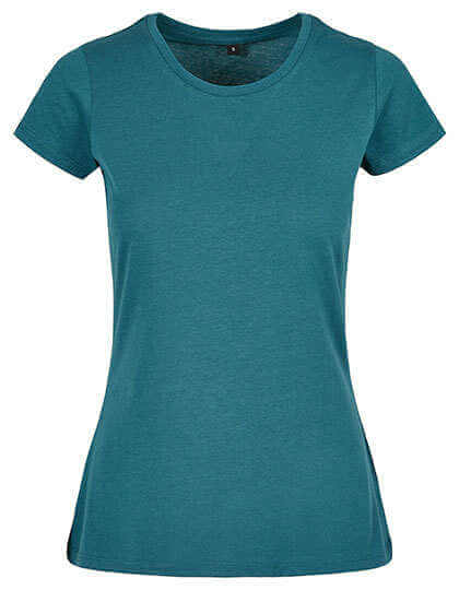 Damen-T-Shirt mit kurzen Ärmeln und enger Passform. Gerippter Ausschnitt. Verstärkte, versteckte Nähte im Ausschnitt. Abnehmbares Etikett.