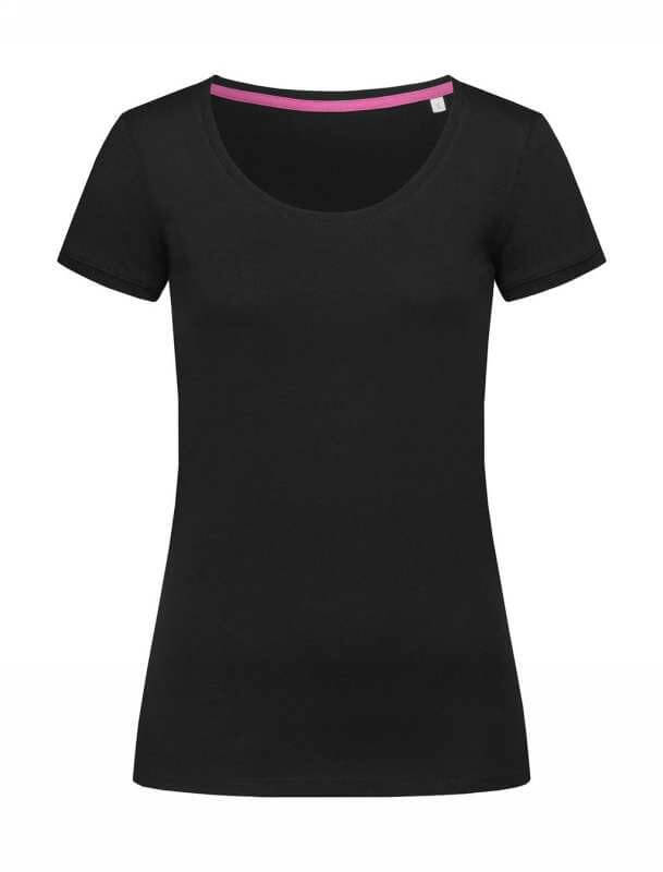 145 g/qm ·100% Baumwolle, ringgesponnen und gekämmt (Single Jersey) ·Weiter, moderner Halsausschnit ·Kontrastfarbenes Nackenband ·Kurze Ärmel mit schmalem Rippbündchen ·Seitennähte ·Moderne Länge ·Body Fit.