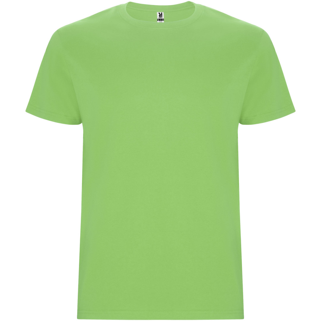 T-Shirt mit 4-lagigem Rundhalsausschnitt und verstärkten, verdeckten Nähten an Kragen und Schultern. Seitennähte. Die Größen 4XL und 5XL sind nur in bestimmten Farben erhältlich. Abnehmbares Etikett. Single jersey Strick 100% Baumwolle, 165 g/m2.