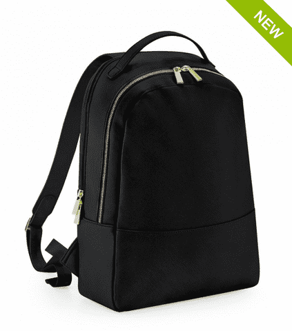100 % Polyester (recycelt) mit PU-Beschichtung - PVC-frei - moderne matte Optik und minimalistisches Design - wasserabweisend - Tragegriff und gepolsterte, verstellbare Schultergurte -Klickverschluss -gepolstertes Laptop-Fach für fast alle Laptops bis 15,6 cm Bildschirmgröße -Vordere Reißverschlusstasche -innenliegende Flaschentasche -zweischichtiges Bodenpaneel für Strapazierfähigkeit -einfach wiederverschließbar -Volumen: 15 l. -28 x 43 x 13 cm -Max. Stickfläche: runder Stickrahmen (Größe 20) -Max. Druckfläche: 23 x 23 cm Druckfläche: 23 x 23 cm.
