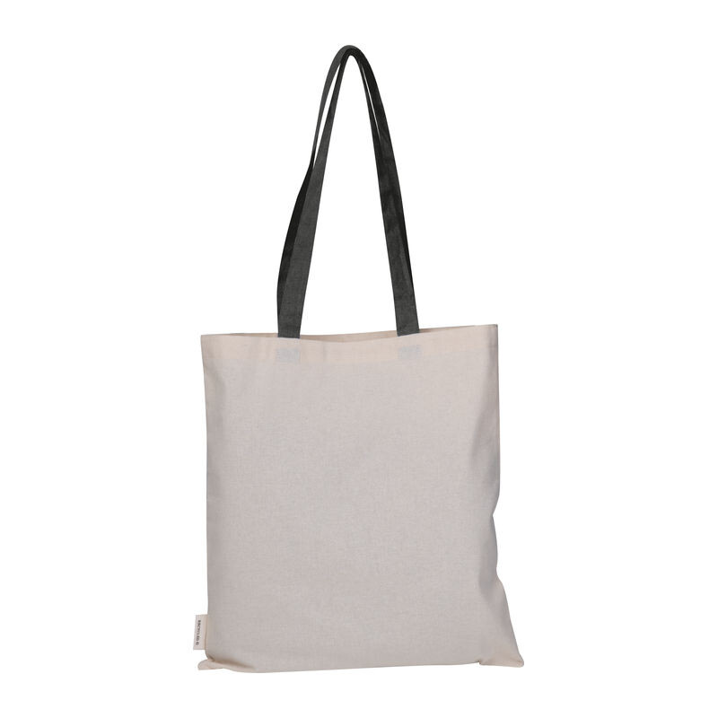 Für umweltbewusste Kunden ist eine Baumwolltasche aus recyceltem Material die ideale Wahl. Dank praktischer Klappfunktion und Kunststoffkappe lässt es sich leicht verstauen und transportieren. Das 118 g/m² Material ist leicht, langlebig und robust – ideal für den täglichen Gebrauch.