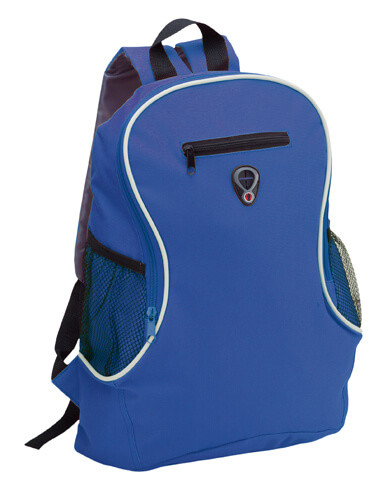 Rucksack aus 600D Polyester mit verstellbarem Schultergurt. Mit Netz-, Handytasche mit Reißverschluss und Hauptfach.