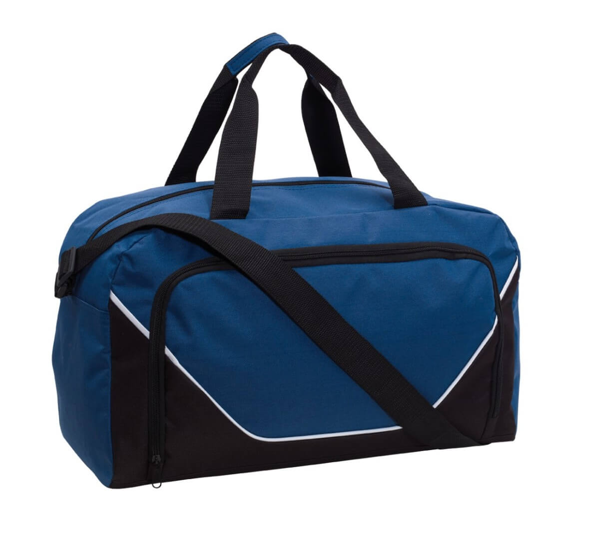 Sporttasche "Champ" : Reißverschluss-Hauptfach, farblich abgesetztes Reißverschluss-Vorfach, seitliche Reißverschlusstaschen, verstärkte Tragegriffe, verstell- und abnehmbarer Gurt mit Schulterpolster