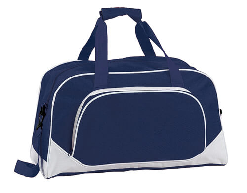 Sporttasche mit zusätzlichem Reißverschluss-Vorfach, verstellbarem Schultergurt und Griffe mit Klettverschluss; Material: 600D Polyester.